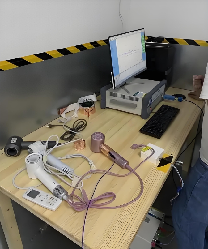 (2)預測試:使用專業的EMC測試設備對高速風機進行預測試,記錄輻射發射、傳導發射等關鍵指標,確定整改重點。